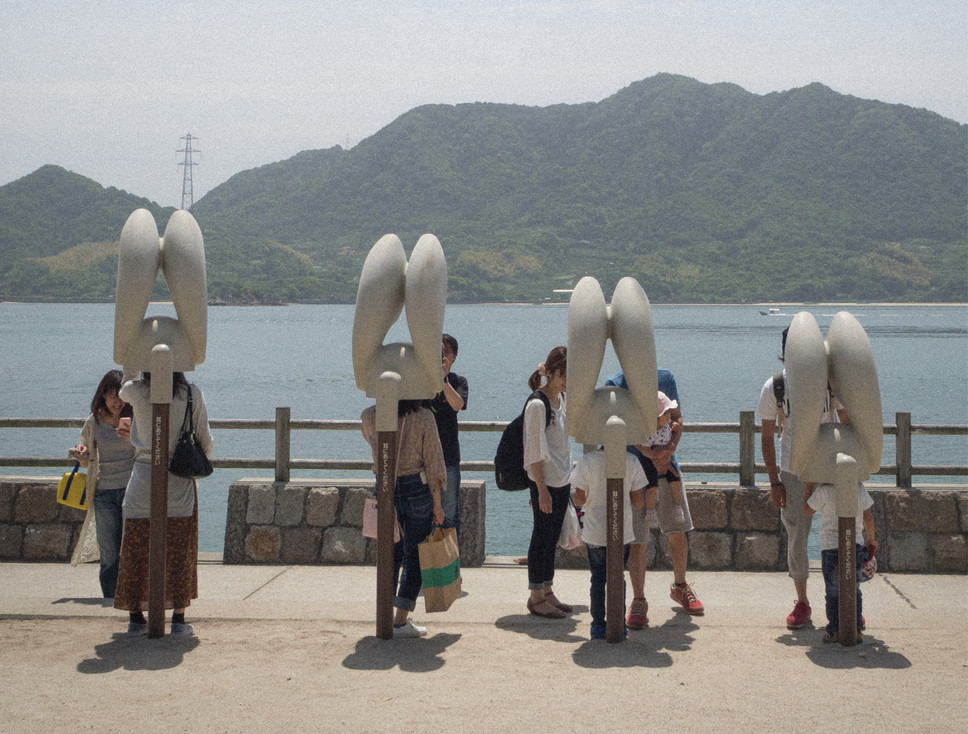 大久野島は広島県竹原市忠海町の沖合いに浮かぶ周囲約4キロ程の小さな島で、戦後放たれた数羽のウサギが瀬戸内の温暖な気候の中で繁殖し「ウサギ島」として知られるようになった。この島には国民休暇村が建てられ、海水浴やキャンプを楽しめるリゾート島として国内外からたくさんの人達が観光に訪れる。